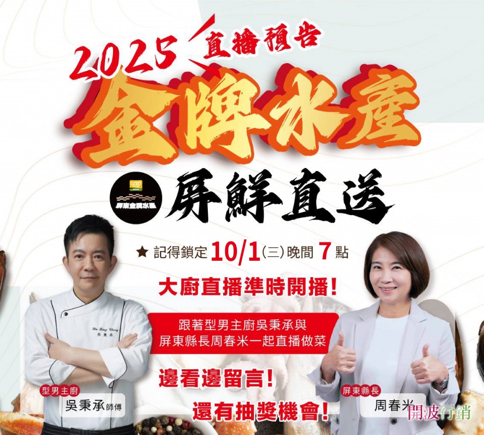 → 下播後將抽出3位幸運觀眾,可獲得「金牌水產品大禮箱」,把屏東海味直接帶回家!