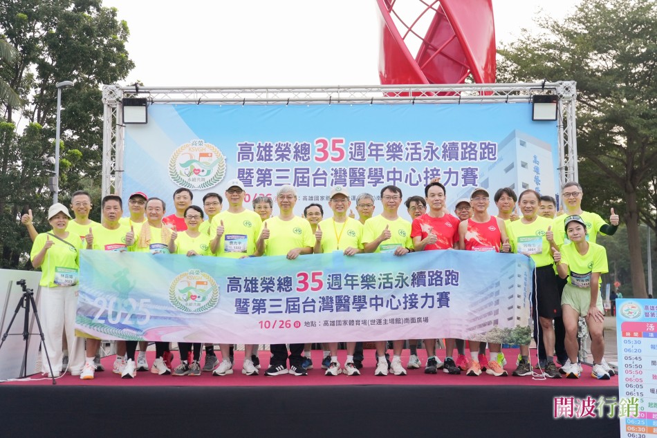 高雄榮民總醫院今年創院35週年,在世運主場館舉辦樂活永續路跑暨第3屆台灣醫學中心接力賽,共有16家醫療機構組成近50支隊伍串聯響應,今年首次邀請「中華視障路跑運動協會」組隊參賽,由陪跑員與視障跑者相伴,讓整場路跑賽事更具意義,高雄榮總邀請全國各醫學中心與多家醫療院所齊聚世運主場館,以5人組隊方式參與20公里接力賽,共有16家醫療機構組成近50支隊伍串聯響應,明年也將交由義大醫院繼續辦理。